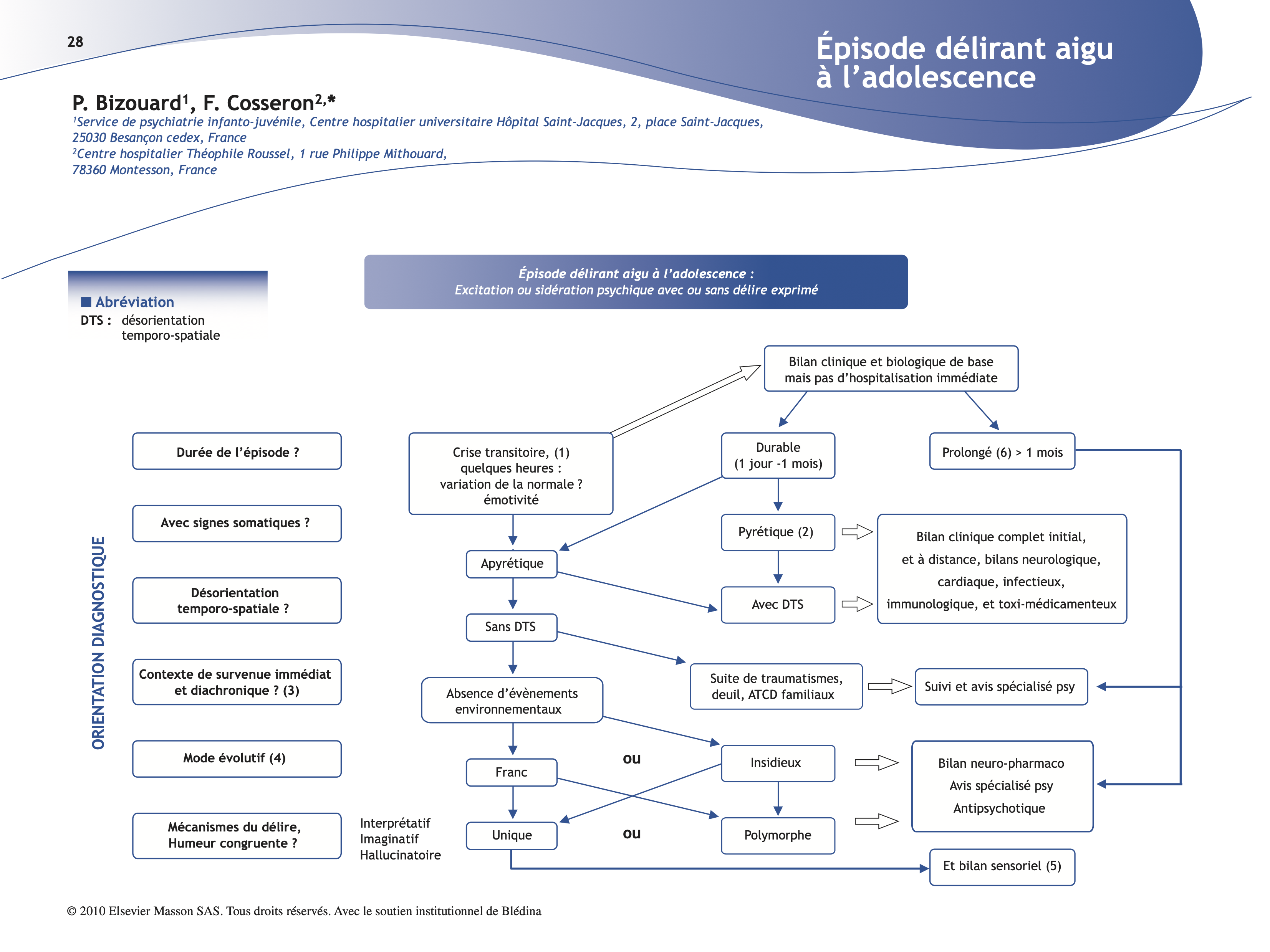 1Service de psychiatrie infanto-juvénile, Centre hospitalier universitaire Hôpital Saint-Jacques, 2, place Saint-Jacques, 25030 Besançon cedex, France 2Centre hospitalier Théophile Roussel, 1 rue Philippe Mithouard, 78360 Montesson, France