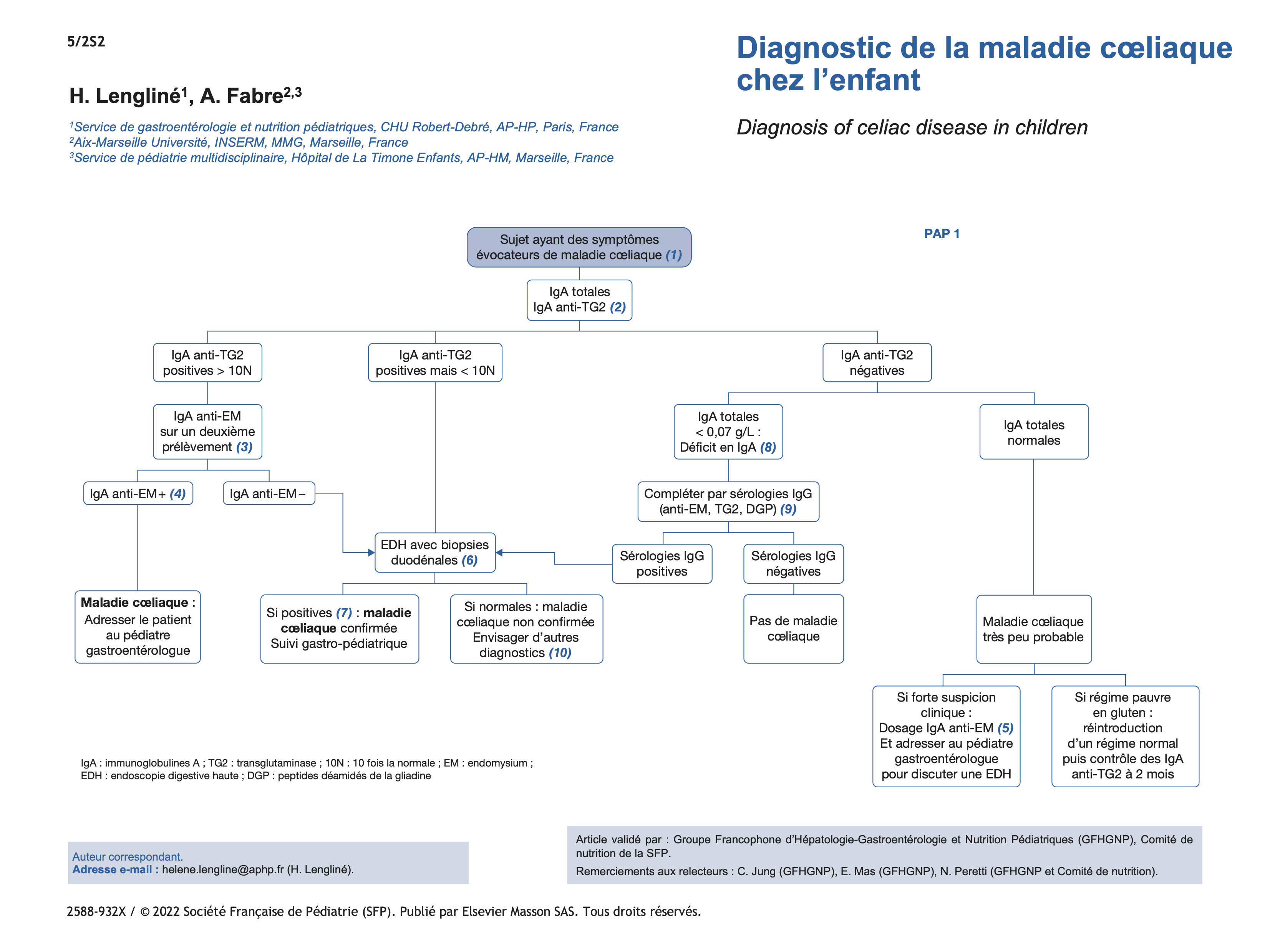 • en cas de forte suspicion clinique, un dosage des IgA anti-EM et une prise en charge par un pédiatre gastro-entérologue sont malgré tout à discuter, cf. (5) ;