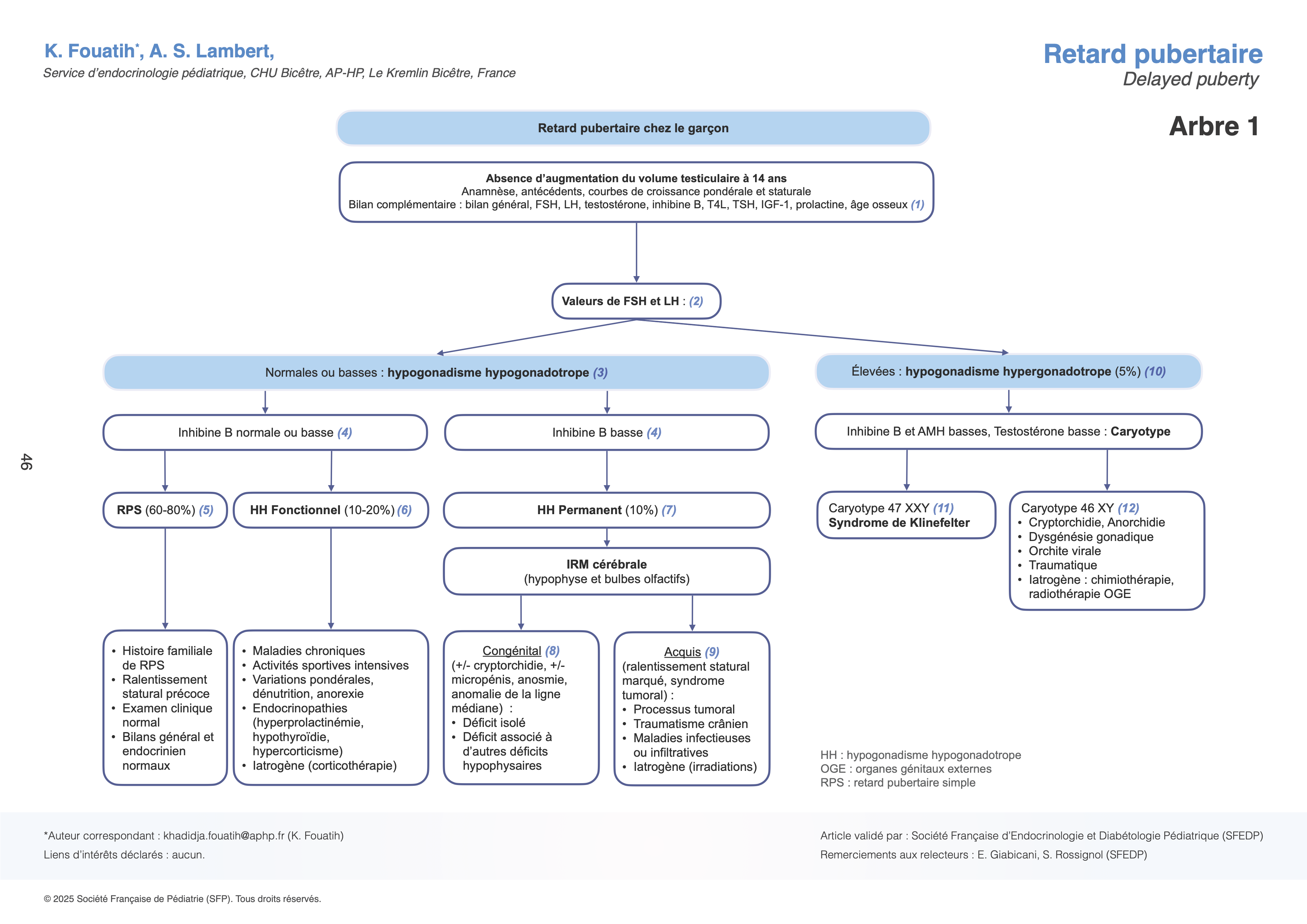Conduite diagnostique devant un retard pubertaire chez le garçon (arbre 1)