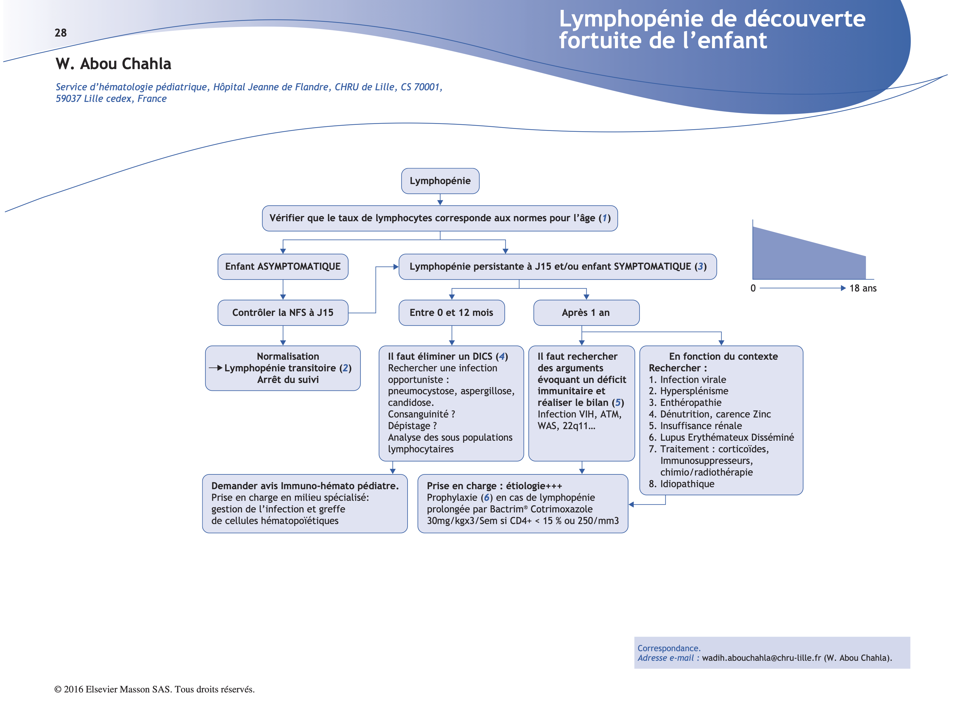 (2) La lymphopénie transitoire est très fréquente chez l’enfant, souvent consécutive d’une infection virale. Il faut interroger les parents en ce sens (rhinite, grippe, varicelle...).
