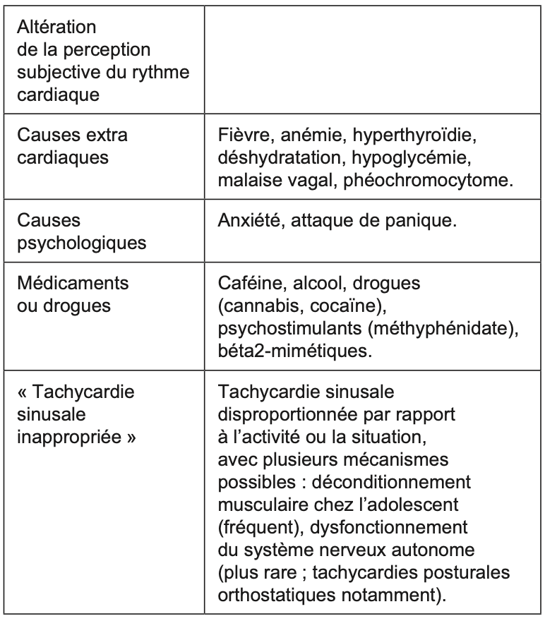 Tableau 1. Palpitations sans cardiopathie sous-jacente.