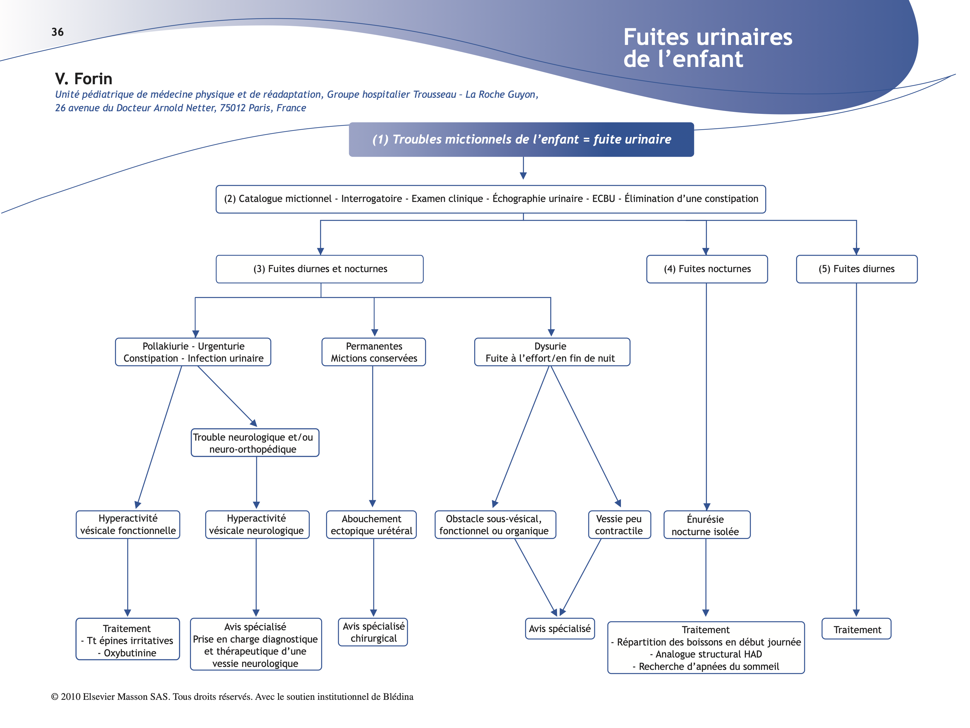 (4) Les fuites sont uniquement nocturnes, le comportement mictionnel diurne et l’examen clinique sont normaux : énurésie nocturne isolée (ENI). Rechercher :