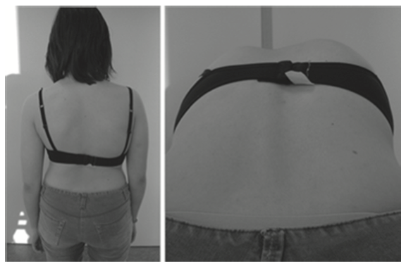 - de face, de l’équilibre des épaules, de l’asymétrie des plis de la taille et de l’équilibre global du tronc ;