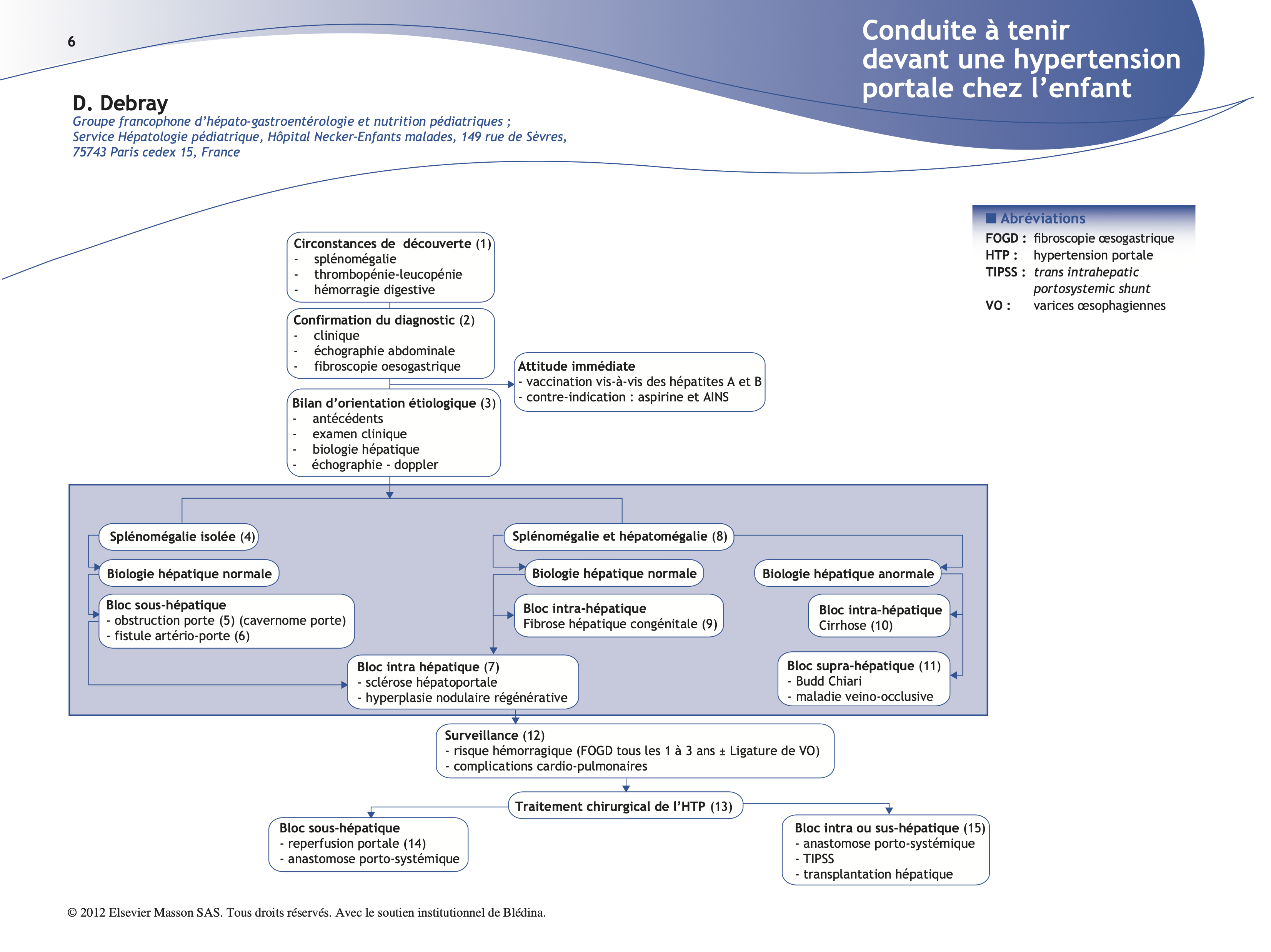(8) L’existence d’une hépatomégalie ferme ou dure suggère un bloc intra-hépatique ou un bloc sus-hépatique beaucoup plus rare chez l’enfant.
