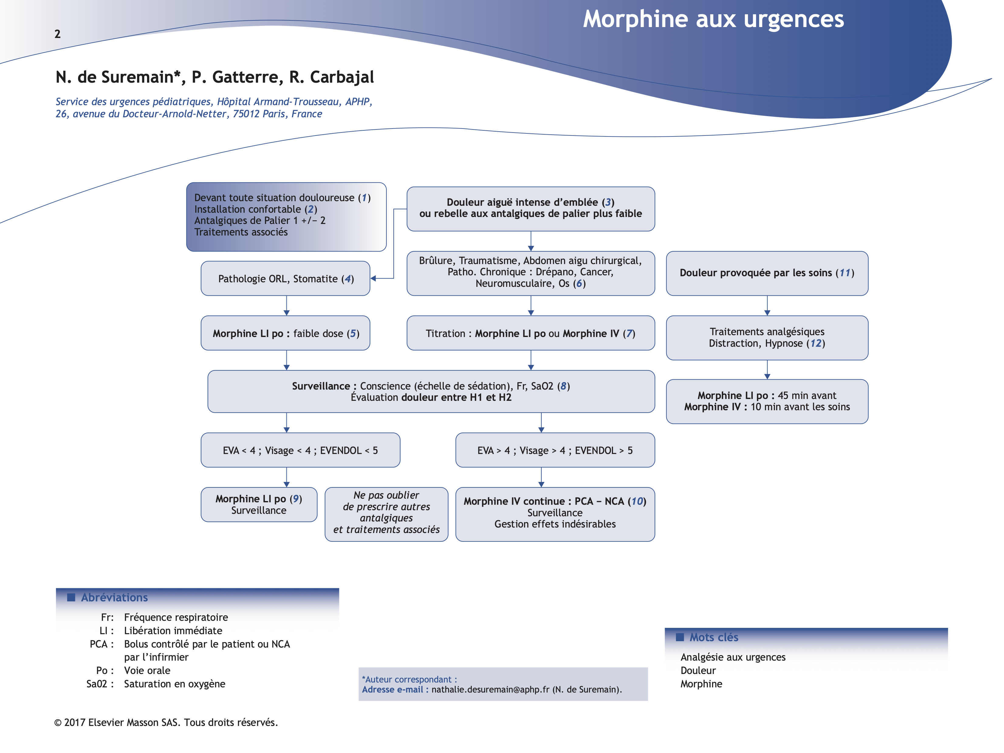 Les règles de prescription des morphiniques doivent toujours être respectées. Utiliser les feuilles de prescription et de surveillance spécifiques (exemple sur www.pediadol.org).