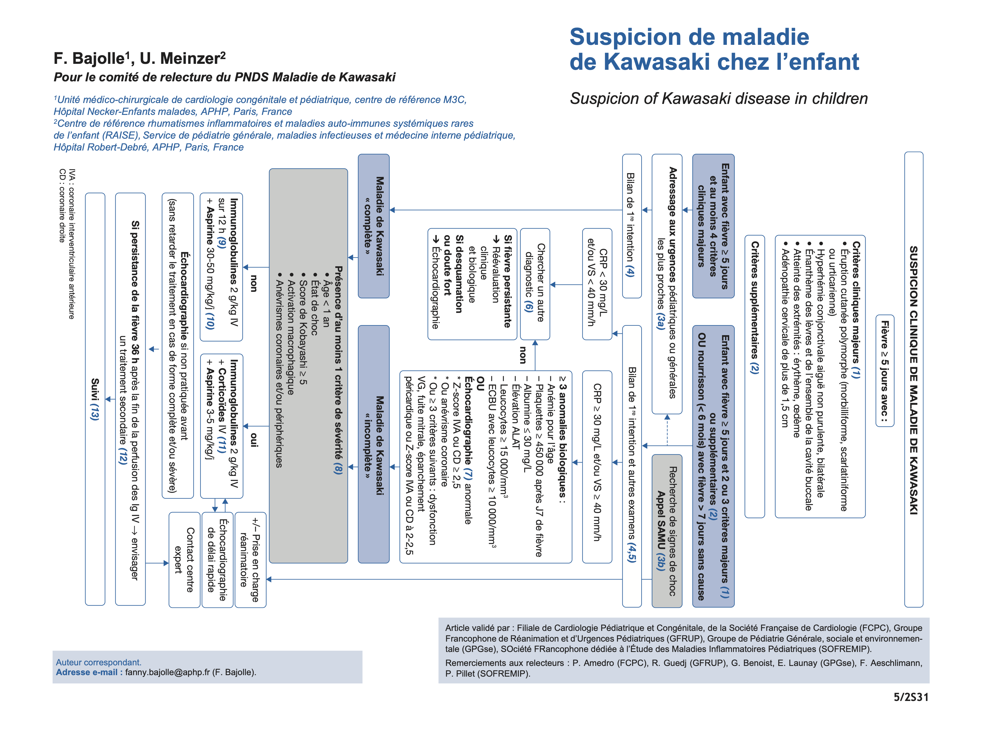 Les éléments apportés sont issus du PNDS Kawasaki en cours de rédaction dont la publication est prévue en 2022 sur le site suivant : https://www.has-sante.fr/jcms/c_1340879/fr/protocoles-nationaux-de-diagnostic-et-de-soins-pnds, et résument les discussions du comité d’écriture du PNDS.