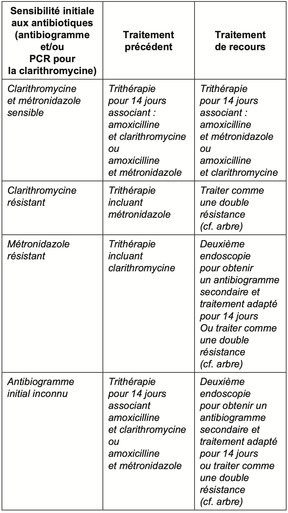 Tableau 2. Traitements de recours recommandés en cas d’échec du traitement d’éradication initiale.