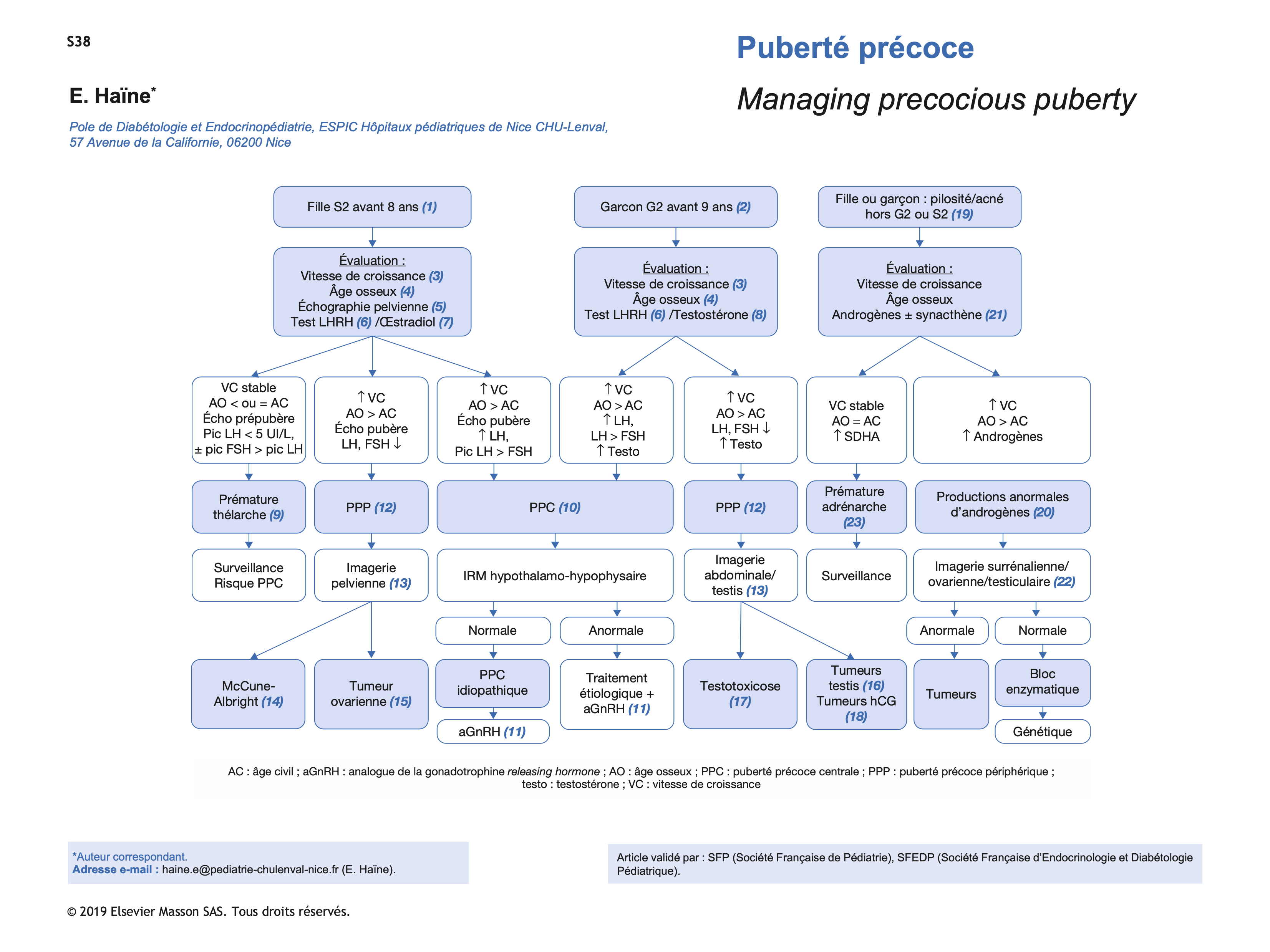 (19) Face à une pilosité pubienne ou axillaire et de l’acné, il peut s’agir d’une simple prémature adrénarche, variante de la normale, mais l’enjeu est d’éliminer une pseudo-puberté précoce.