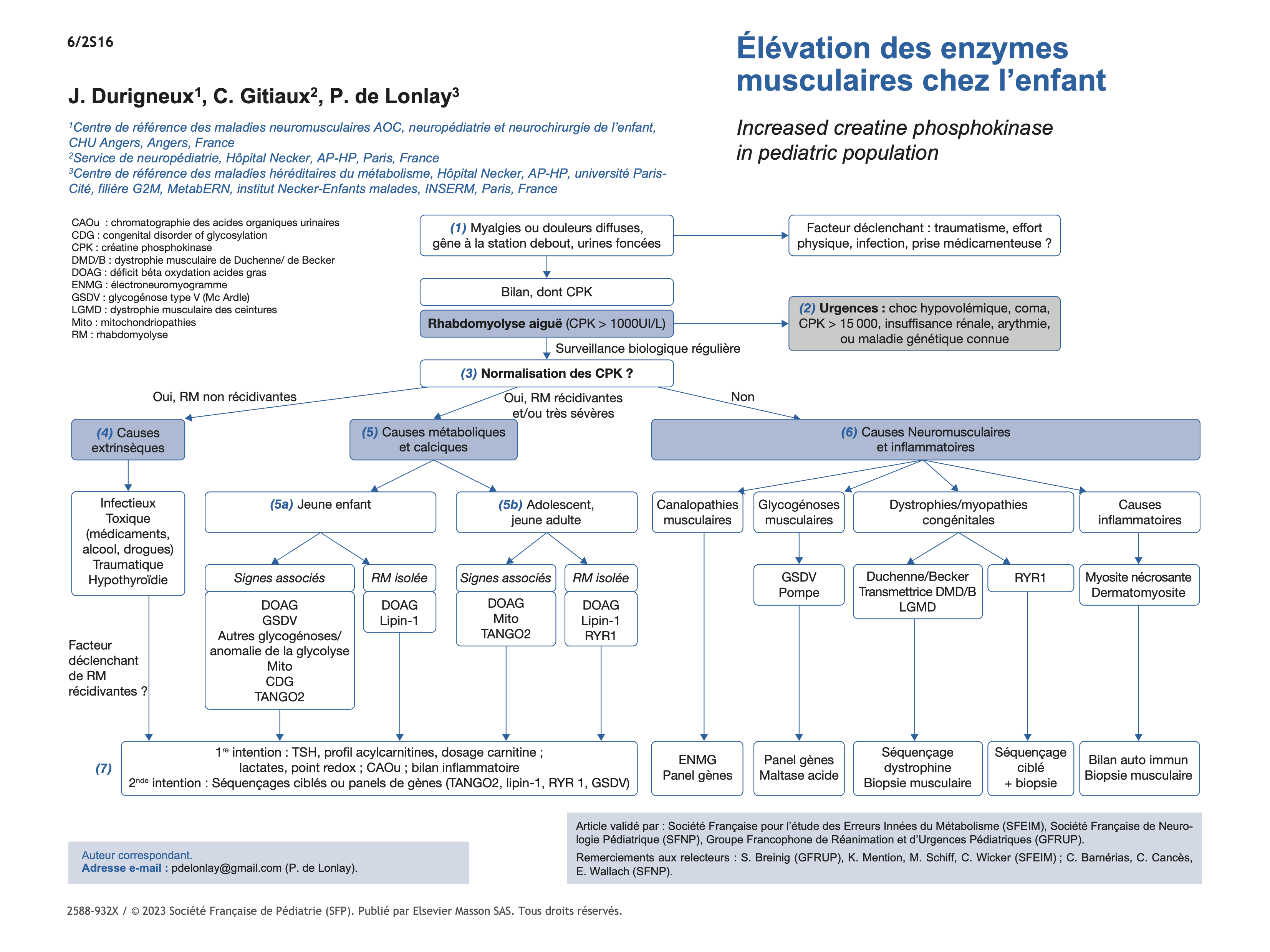 1Centre de référence des maladies neuromusculaires AOC, neuropédiatrie et neurochirurgie de l’enfant, CHU Angers, Angers, France 2Service de neuropédiatrie, Hôpital Necker, AP-HP, Paris, France 3Centre de référence des maladies héréditaires du métabolisme, Hôpital Necker, AP-HP, université Paris-Cité, filière G2M, MetabERN, institut Necker-Enfants malades, INSERM, Paris, France