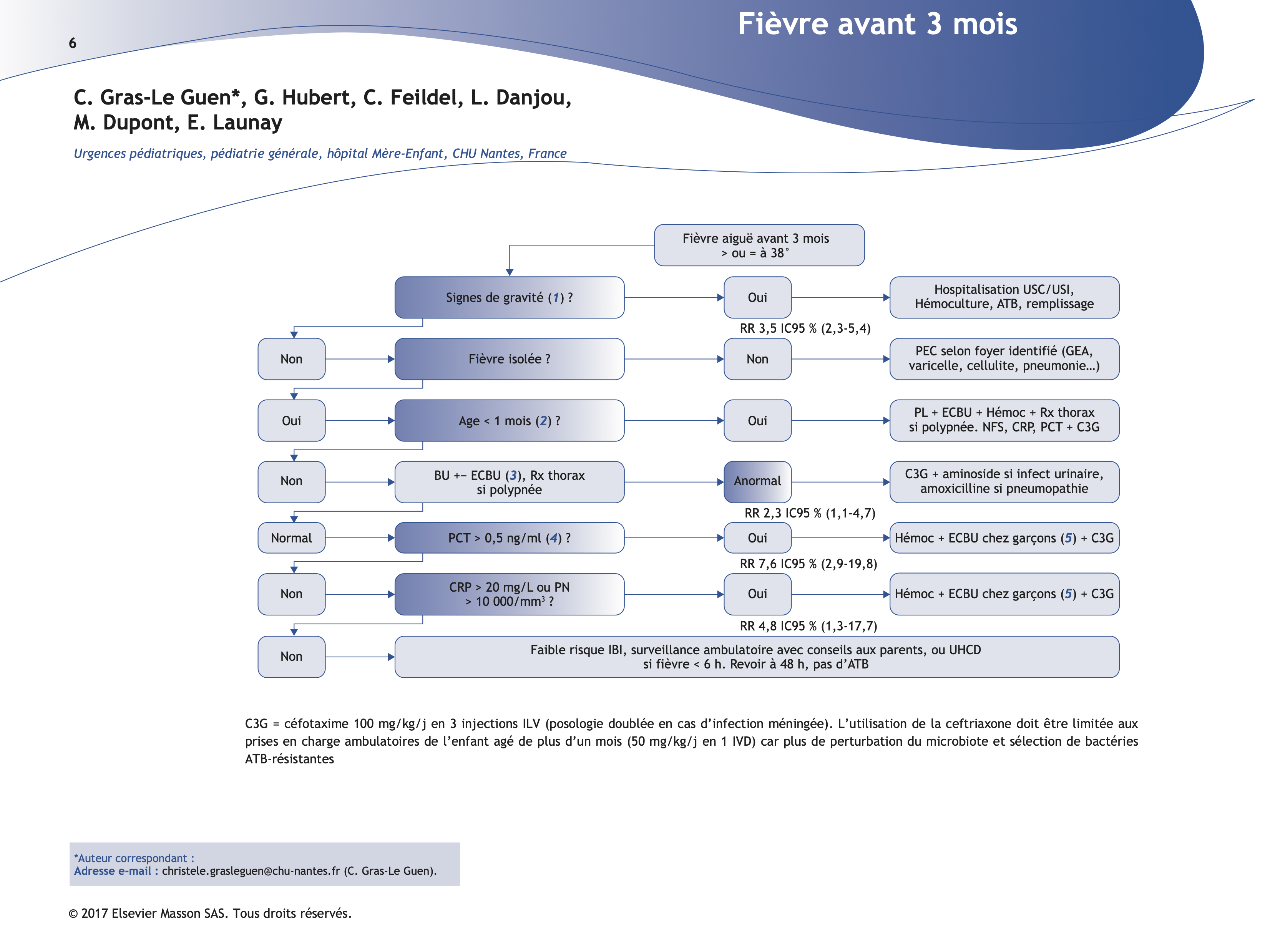 L’algorithme proposé concerne l’enfant âgé de moins de 3 mois consultant aux urgences pour une fièvre aiguë, à l’exclusion des enfants déjà hospitalisés (infections nosocomiales). Les infections néonatales ne seront pas traitées.